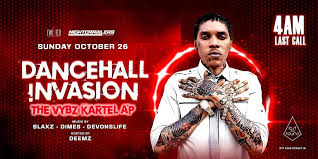 Late-night dancehall party event in Mississauga featuring the tunes of Vybz Kartel and top DJs – high-energy nightlife for dance lovers.